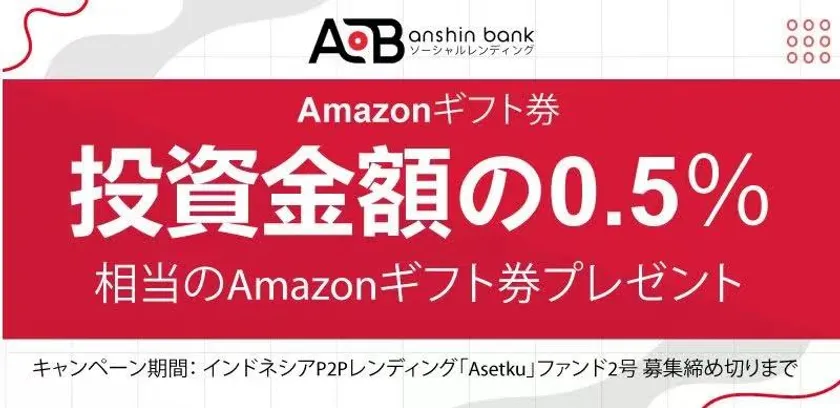 さらに、2号ファンドに投資いただいたお客様に投資金額の0.5%相当のAmazonギフト券をプレゼントいたします。