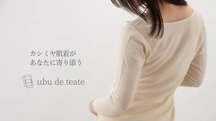 『ウブデテアテ』は皮膚科医監修のもと開発された100%カシミヤ素材の肌着ブランドで、調湿性・保温性に優れ、柔らかい肌触りが特徴です。ブランド名はカシミヤの「うぶ」毛が心も体も「手当て」するように、癒しを与えられますようにとの想いを込めて付けられました。