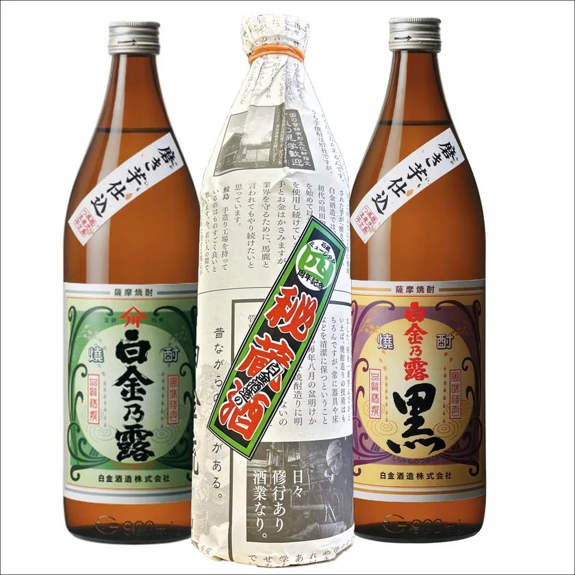 明治2年創業。今年で152年目を迎え、創業以来この地で、昔と変わらぬ仕込み方法で伝統の味を守っています。鹿児島最古の焼酎蔵の一つと言われており、西南戦争の際は、西郷隆盛率いる薩摩軍が陣を張り、戦場での栄養ドリンク剤、怪我を負った際の消毒液として蔵にあった焼酎を全て買い占められたとも言われております。創業当時から現在に至るまで焼酎造りがなされている「石蔵」は平成13年に国の登録有形文化財に指定され、「見て」「感じる」製造工程の見学や、焼酎の歴史を学ぶ事ができるミュージアムとしても運営しております。代表銘柄の「白金乃露」はもとより、今後も手間暇かけた手造りにこだわった商品をつくって参ります。