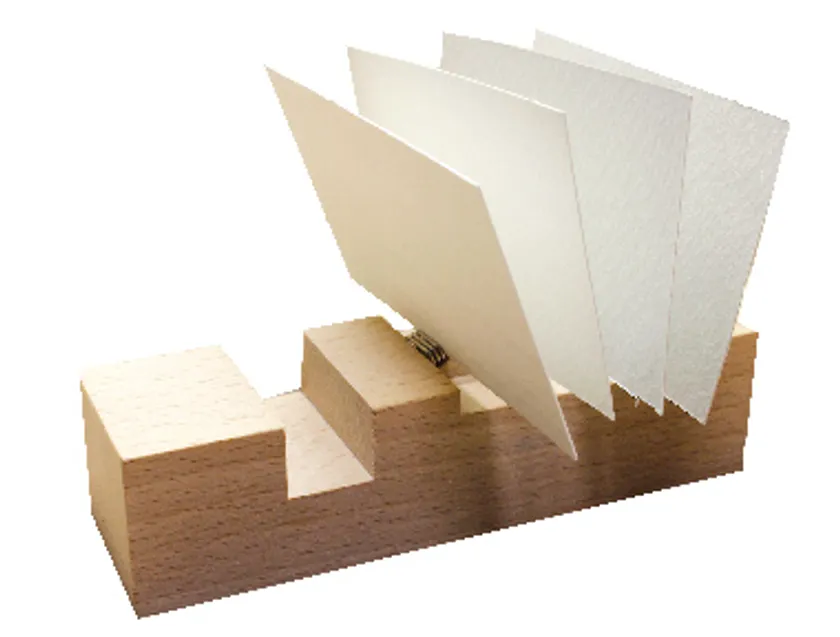 特殊形状の角型のスプリングが、写真や名刺を丁度良い強さでホールドします。名刺を差した際のフィット感をお楽しみいただけます。