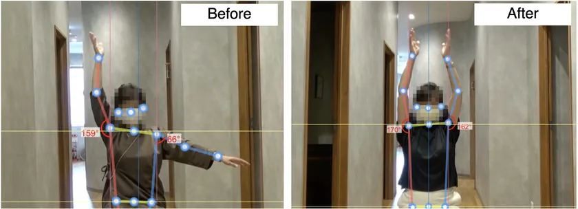 Posenをリハビリテーションに活用することによって、統一した評価や視覚的なフィードバックを簡単に行えるようになった他、これまで以上に患者様の状態経過が可視化できるため効果的なリハビリを提供、確かな疼痛抑制に繋がっています。