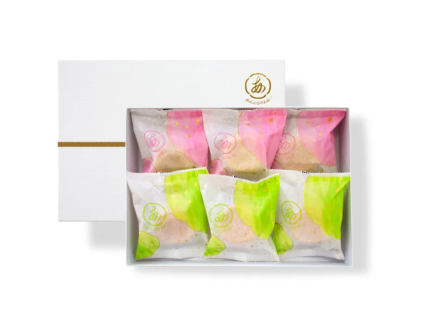 最近では、親戚の方やお友達へのギフトをお渡しする方も多いのではないでしょうか。見た目は、白を基調とした高級感のあるデザイン。箱を開けると、ぱっとした明るい色で包装されたあんこはさんだーが目に飛び込んできます。