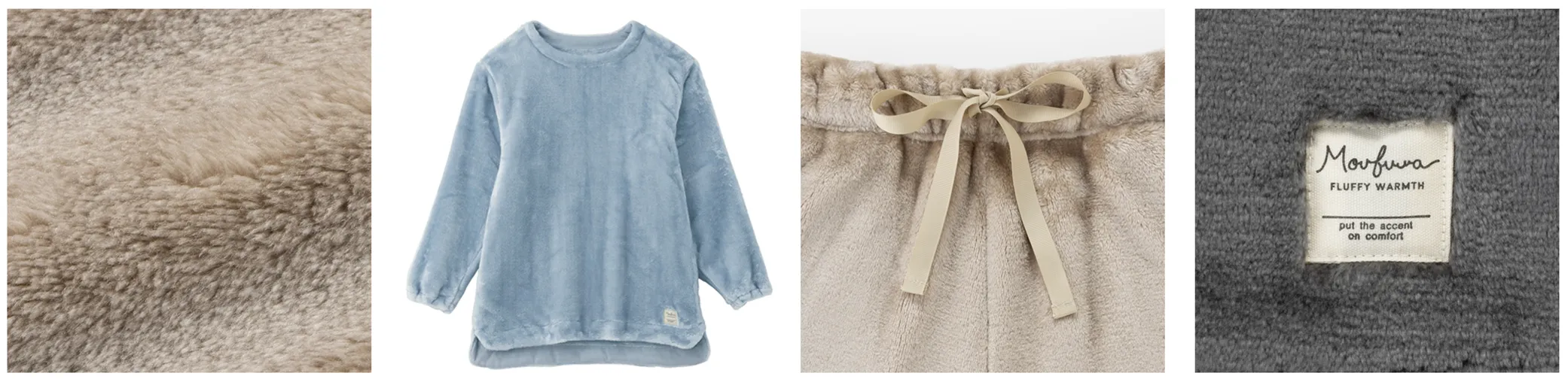 「moufuwa」は、子ども達に大好きなふわふわの毛布をそのまま着せることができないか?という発想から、2020年に生まれたシャギーフリースのオリジナルブランドで、累計販売枚数数は1万9,000枚(※)を超え、大変ご好評いただいております。今回、「大人用のシャギーフリースのアイテムが欲しい」という多くのお客様の声に応えて、この冬の商品開発テーマである「ぬくもり、やさしさ、しあわせを家族で感じてもらいたい」をもとに、レディースとメンズのフリースパジャマ・はんてんを開発しました。(※2021年9月時点)