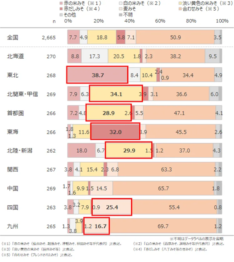 調査結果5:「みその種類」の地域差は顕著