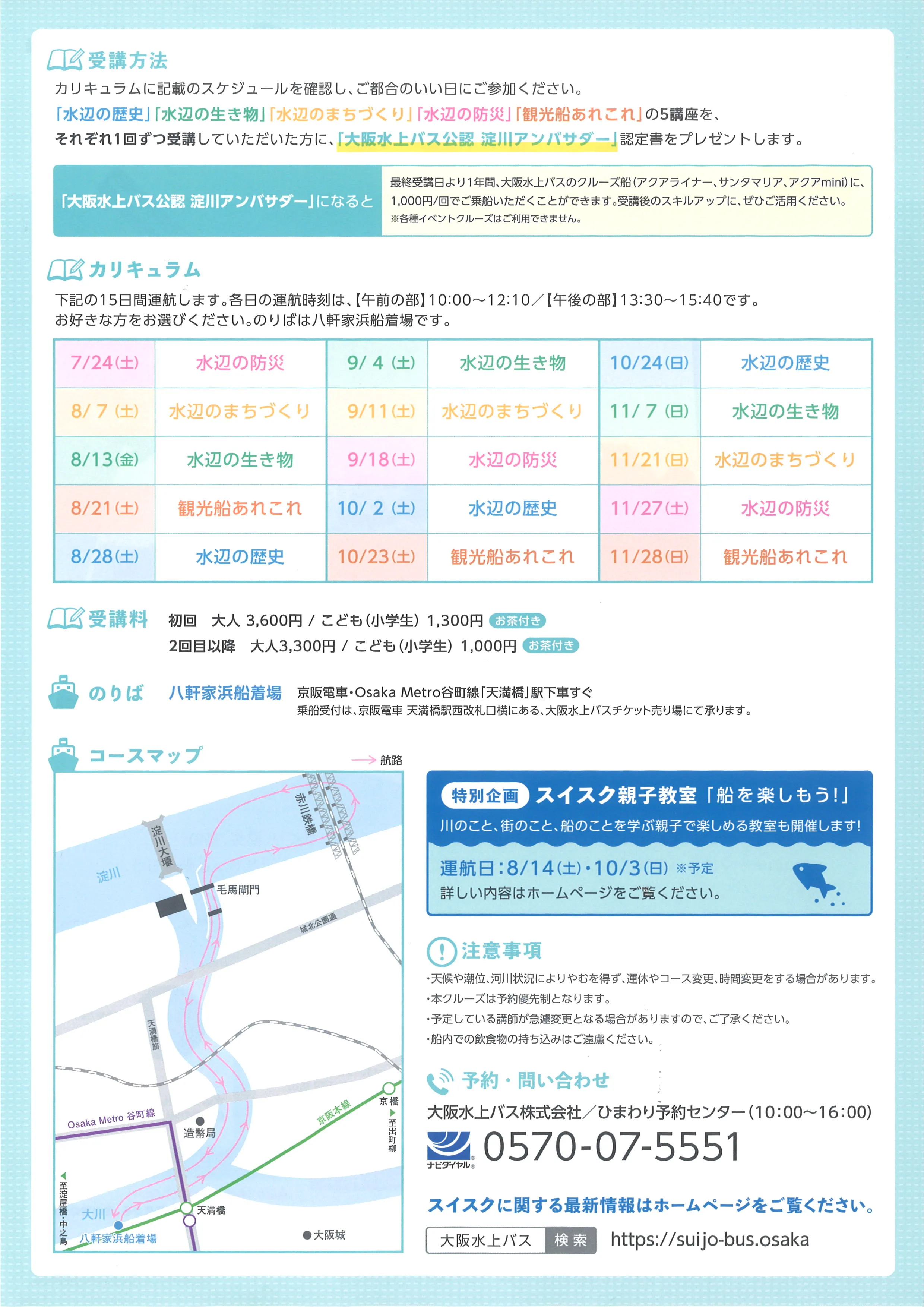 問合せ:0570-07-5551 大阪水上バス予約センター(10:00~16:00)