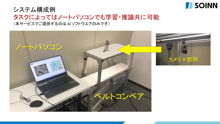学習済みのAIは、お客さまのお手元でトライアル運用頂けます。運用は市販のPCで可能で、高性能・高額なハードウエアは不要です。有償ライセンスへの移行は、トライアル運用でAIの有効性や使い勝手を確認頂いた後にご判断頂けます。