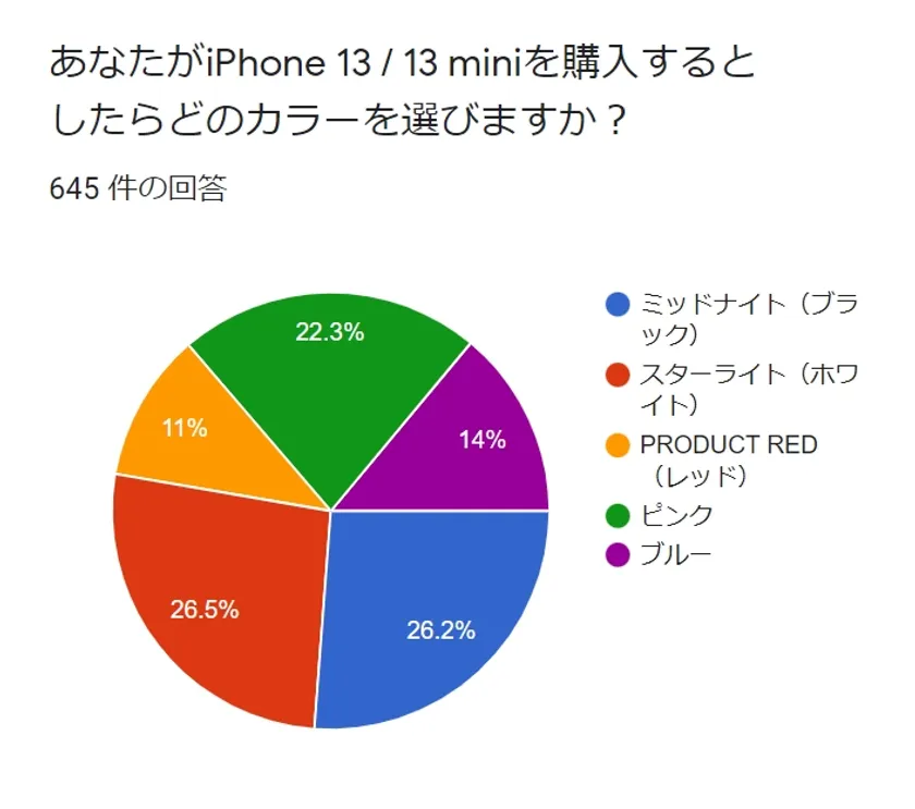 結果6:iPhone 13 / miniの人気カラーは「スターライト」、iPhone 13 Pro / Pro MAXの人気カラーは新色の「シエラブルー」