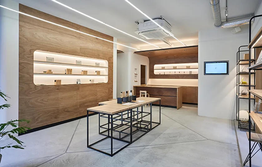 そして、お肌も心も生き生きと、明るく前向きな気持ちになれる場所でありたいと願っています。「無垢」というキーワードをコンセプトに、凛とした強さと自然な温かみを感じられる、心が癒される空間に仕上がりました。