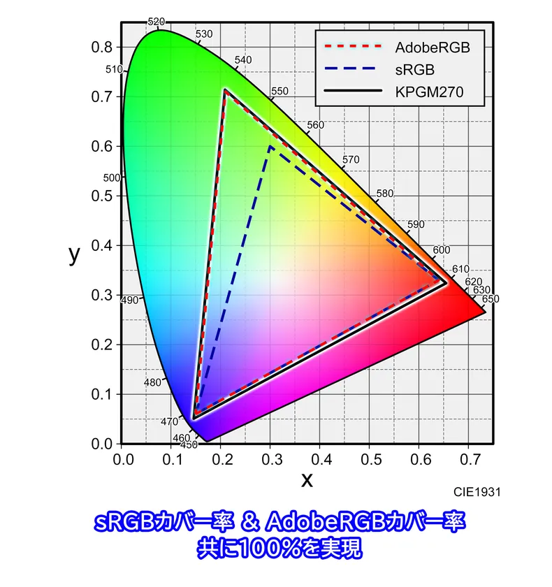最大リフレッシュレート180Hz対応27型ゲーミングモニター『KPGM270』 色域図