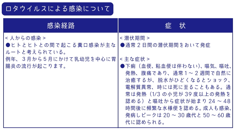 ではロタウイルスの感染経路、症状はどのようなものでしょうか?