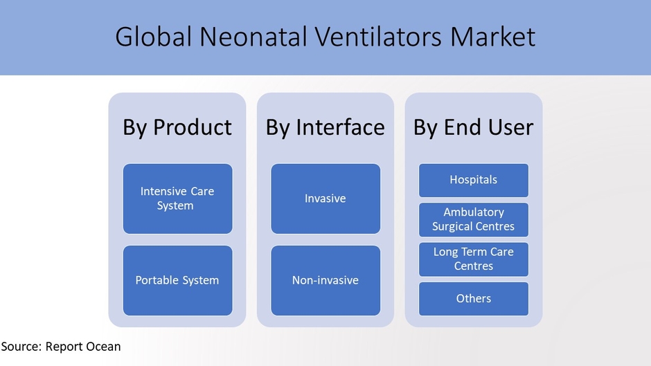 新生児用人工呼吸器市場は、製品タイプ、インターフェース、エンドユーザーに基づいて区分されています。これらの主要な市場セグメントは、さらに様々なサブセグメントに分類され、市場を詳細に調査しています。