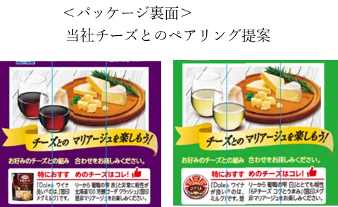 また、当社ならではの提案として、「味覚センサー」を使って、当社チーズとの相性分析※を実施。特に相性の良かったチーズを「特におすすめのチーズ」として、パッケージ裏面に掲載しました。