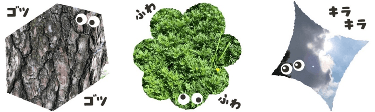 「ザラザラ」「ツルツル」など、自然の中にある「オノマトペ(擬態語)」を探して写真を撮影しよう。自然物の表面はいろんなテクスチャーがあります。親子で公園の中を散策しながら、9つの「オノマトペおばけ」を集めよう!