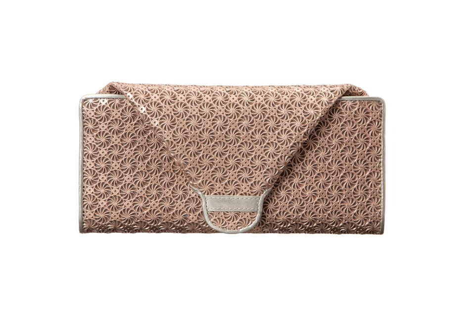 「GIRASOLE」は、一見金網のように見える連続的な模様の革素材で、箔押しをした牛革に型押しと型抜きを同時に施したもので、年齢や性別、また着こなしを問わずに多くのお客様に愛用される「ヒロコ ハヤシ」の人気商品です。今回の限定店舗では、ここでしか手に入らない限定カラーや限定アイテムが多数登場します。