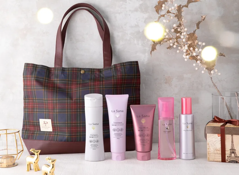毎年大人気の『ラサーナ クリスマスコフレ』。1年で最も華やぐクリスマスシーズンに向け、“おうち美容で頭皮から健やかな美髪へ”をコンセプトに、ラサーナの人気アイテムを揃えた全7種類をご用意。「髪のお悩み」や「なりたい仕上がり」に合わせて、たっぷりと贅沢な美髪習慣をご体感いただける限定ヘアケアコフレです。今年のコフレご購入特典は、英国王室ご愛用のタータン(チェック柄)ブランド“DCダルグリーシュ”とのコラボバッグ(※2)です。