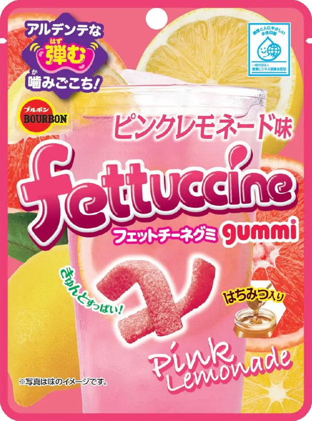 ブルボン、さわやかですっきりとしたピンクレモネードの味わい 「フェットチーネグミピンクレモネード味」を 10月5日(火)に新発売!