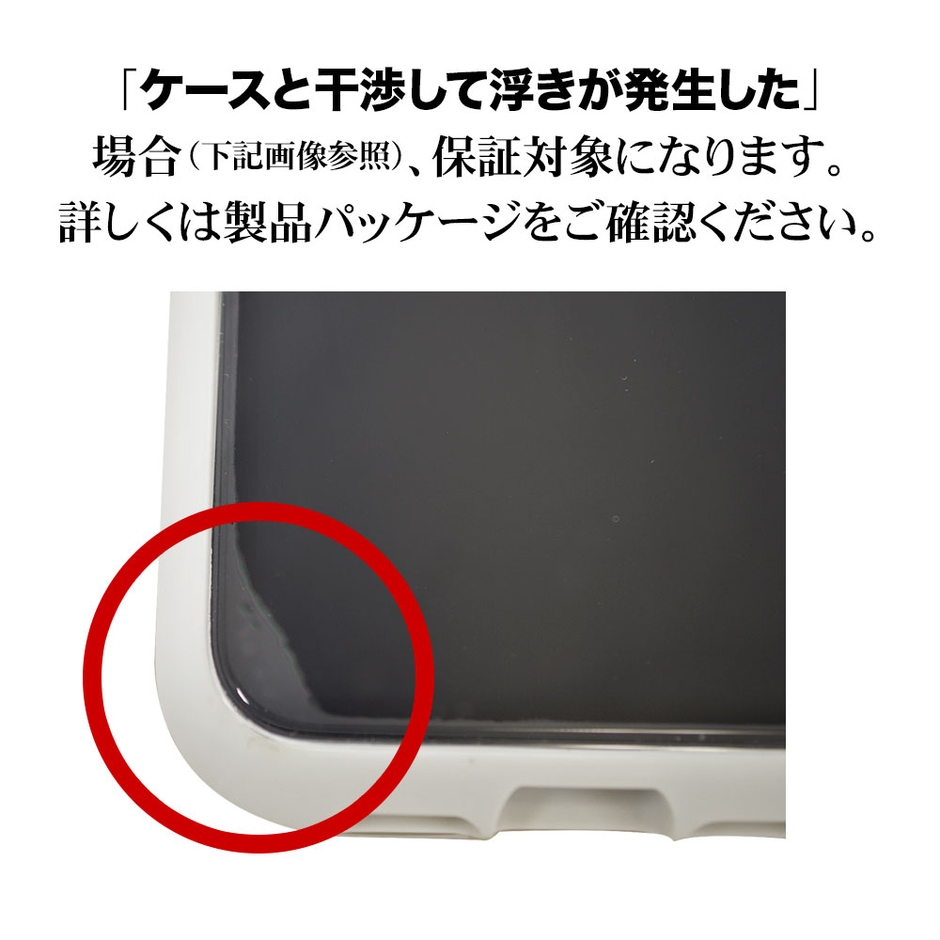 万が一、ガラスフィルムが「ケースと干渉して浮いた」場合は購入から365日以内に1度だけ交換ができるので安心してご利用いただけます。