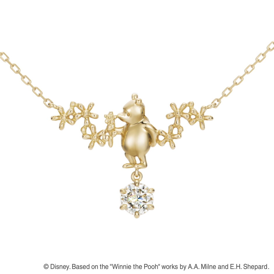 ケイウノは、2010年よりディズニーデザイン ジュエリーのオーダーメイドを手がけています。婚約指輪、結婚指輪、ネックレスやリングなどのファッションジュエリー、時計など、これまでに6万種類以上を生み出してきました。オーダーメイドストーリーとして、実際のお客さまのストーリーを毎月1回ほど紹介しています。最近では、「クラッシック・プー」をモチーフにしたネックレス、『リトル・マーメイド』の「アリエル」&「エリック王子」をモチーフにしたネックレス、『101匹わんちゃん』をイメージした結婚指輪などがあります。