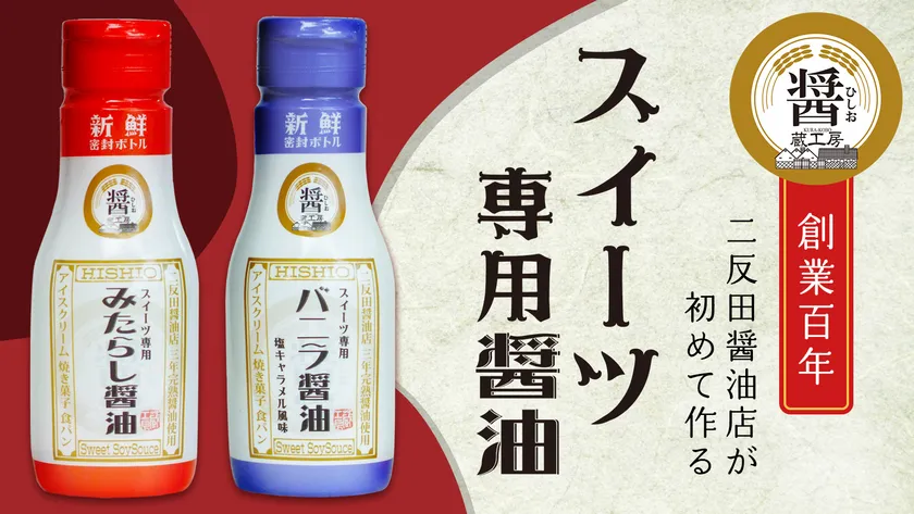 創業102年 大分県中津市の二反田醤油店が今までにない 新感覚の「スイーツ専用醤油」を開発! 洋風スイーツ「バニラ醤油」&和風スイーツ「みたらし醤油」の クラウドファンディングを10月24日まで実施