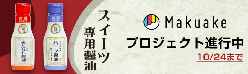 有限会社二反田醤油店中津工場(大分県中津市)は、今回新たに今までにない新分野、スイーツのための「バニラ醤油」「みたらし醤油」を開発しました。11月の販売開始を前に、10月24日までクラウドファンディングを実施しています。