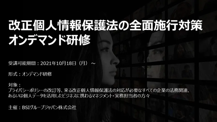 BSIグループジャパン株式会社(所在地:神奈川県横浜市、代表取締役社長:漆原 将樹、以下「BSIジャパン」)、BSI Professional Services Japan 株式会社(神奈川県横浜市、代表取締役社長 小島 英彦、以下「BSI PSJ」、以下、BSIジャパンおよびBSI PSJを合わせて「BSIグループ」)、ZEROBILLBANK JAPAN株式会社(本社:東京都千代田区大手町、代表取締役社長:堀口 純一、以下 ZBB)は、令和2年改正個人情報保護法の全面施行に向けて、実践的対策研修の提供を開始します。