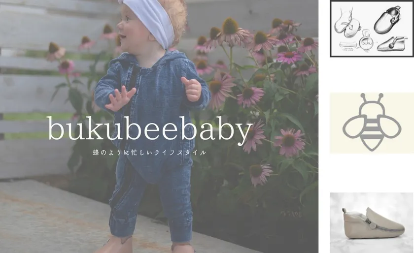 “~蜂のように忙しいライフスタイル~”を背景に名付けられたbukubeebabyは「男の子にも女の子にも似合う意義のある靴を作りたい」という想いから、カリフォルニア州ハンティントンビーチの小さな家族によって生まれた本革製ベビーシューズです。