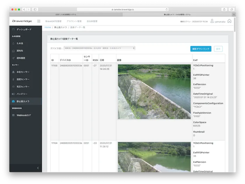 管理画面:撮影画像