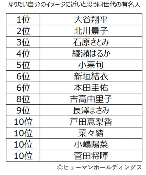 なりたい自分のイメージに近い有名人 1位:大谷翔平選手 2位:北川景子さん|上位者の共通点は「自己確立」
