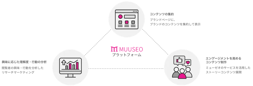 「ミューゼオブランドストーリー」では、これらのミューゼオの「多彩な文脈」と「深み」の伝達および表現を目的とした機能やコンテンツ、アートやカルチャーに興味関心の高い利用者層との接点、専門ノウハウの3つを組み合わせて提供いたします*3。