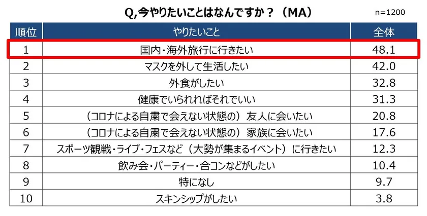 7. 今やりたいことは「国内・海外旅行に行きたい」が48.1%でトップ!行動制限緩和後の行動が予測される結果に。