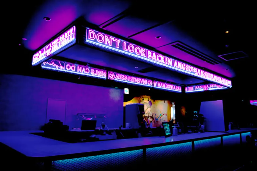 色鮮やかなネオンが光る360°アイランドバー