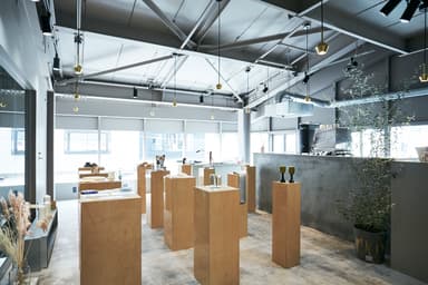 日本を代表する建築事務所「SANAA」出身で、建築設計から内装、家具、プロダクトデザイン、まちづくりなどの幅広い分野で活動する小野寺 匠吾が内装デザインを担当。1978年竣工の古いビルの一室をワンルーム形式に整理し、大きさの異なる3種類の可動式什器を並べ替えることで、用途に応じて自由にレイアウトできるようにデザインしました。こだわり抜かれた商品がそれぞれの什器に一品ずつ並べて置かれると展示品のようにスポットを浴びるのに対して、什器をまとめて並べると大テーブルのようになるなど、さまざまな見せ方を通して、その商品の生産者・製作者のストーリーや背景を伝えていきます。