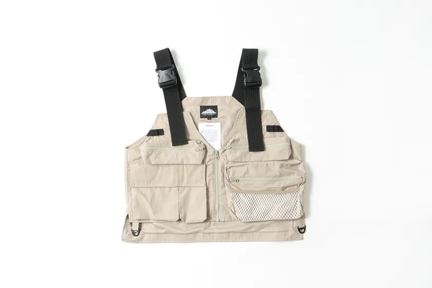 シリーズ初となる難燃性のあるユーティリティベスト。身幅をワイドにとった現代的なシルエットで、多数のポケットを搭載し機能性満載。