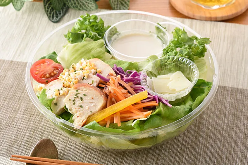 本商品は、2021年6月から続くサラダカフェ監修シリーズの第4弾で、栄養価が高く野菜の王様とも呼ばれるケールを使用。国産ケールの他には、ローストチキン、レタス、紫キャベツや人参マリネなど彩りの良い野菜も添えた食べ応えのあるサラダです。シーザーサラダドレッシングの濃厚な味わいに、トッピングのパルメザンチーズが旨みとコクをプラスします。