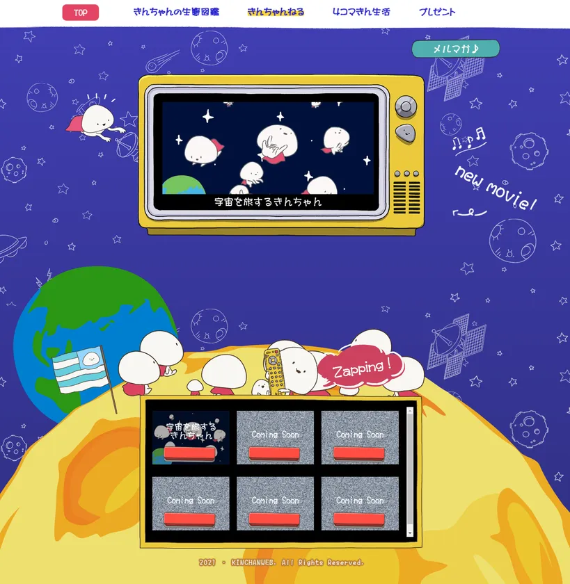 「宇宙を旅するきんちゃん」「きんちゃんをさがせ」など子供から大人まで気軽に楽しめるきんちゃんの動画が見られます。今後もいろんな動画が増えていく予定です。