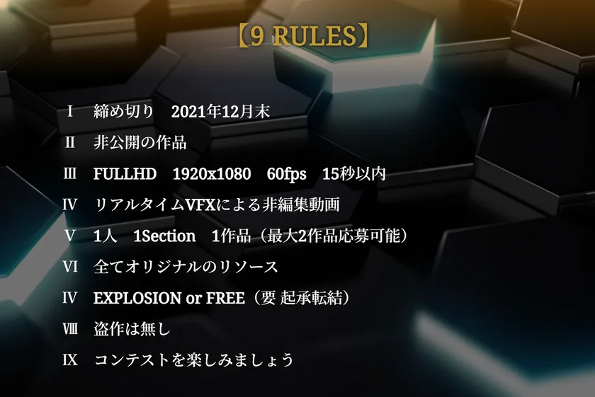 本コンテストは主にゲーム業界における『ビジュアルエフェクトの楽しさを広める』ために企画されたVFX作品のコンテストです。
