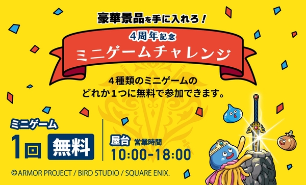 いよいよ今週末から開催!ニジゲンノモリ「ドラゴンクエスト アイランド 4周年記念大感謝祭」 小人チケット限定キャンペーン「豪華景品を手に入れろ!ミニゲームチャレンジ」