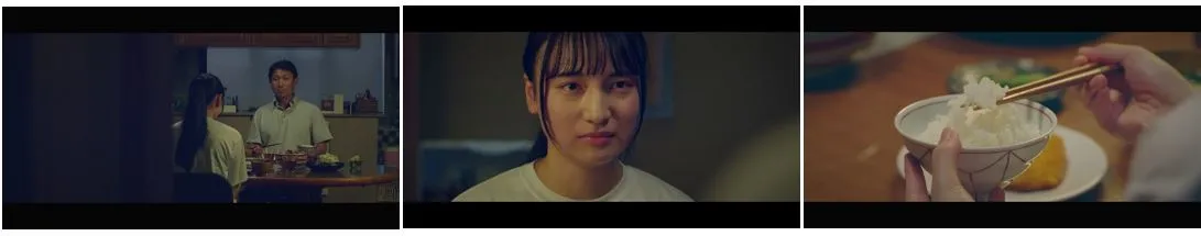 父と娘の食卓の風景が映し出されます。ご飯を食べる娘は、試合に負けたのか、悲しそうな様子。