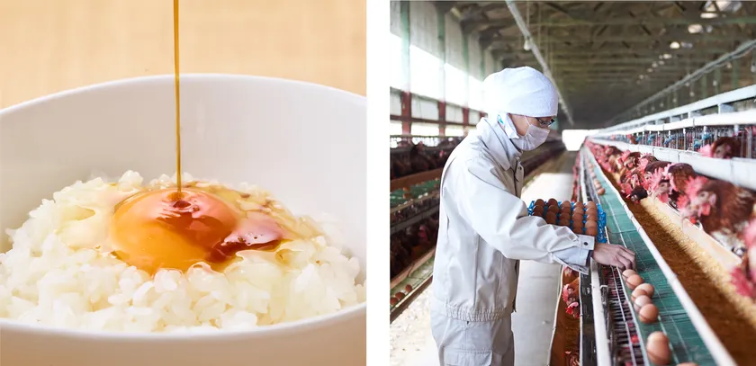 東山産業の卵は、とろりとした質感の濃厚でコクの深い卵黄が特徴の卵です。