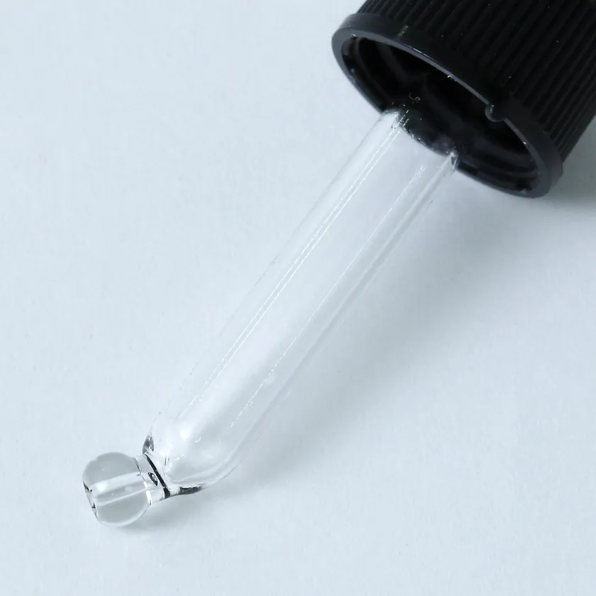 曲がりスポイトは、残量が少なくなった際にも吸い上げやすく、先の玉はオイルを肌に直接つける際に皮膚を傷つけにくいという特徴を持っています。
