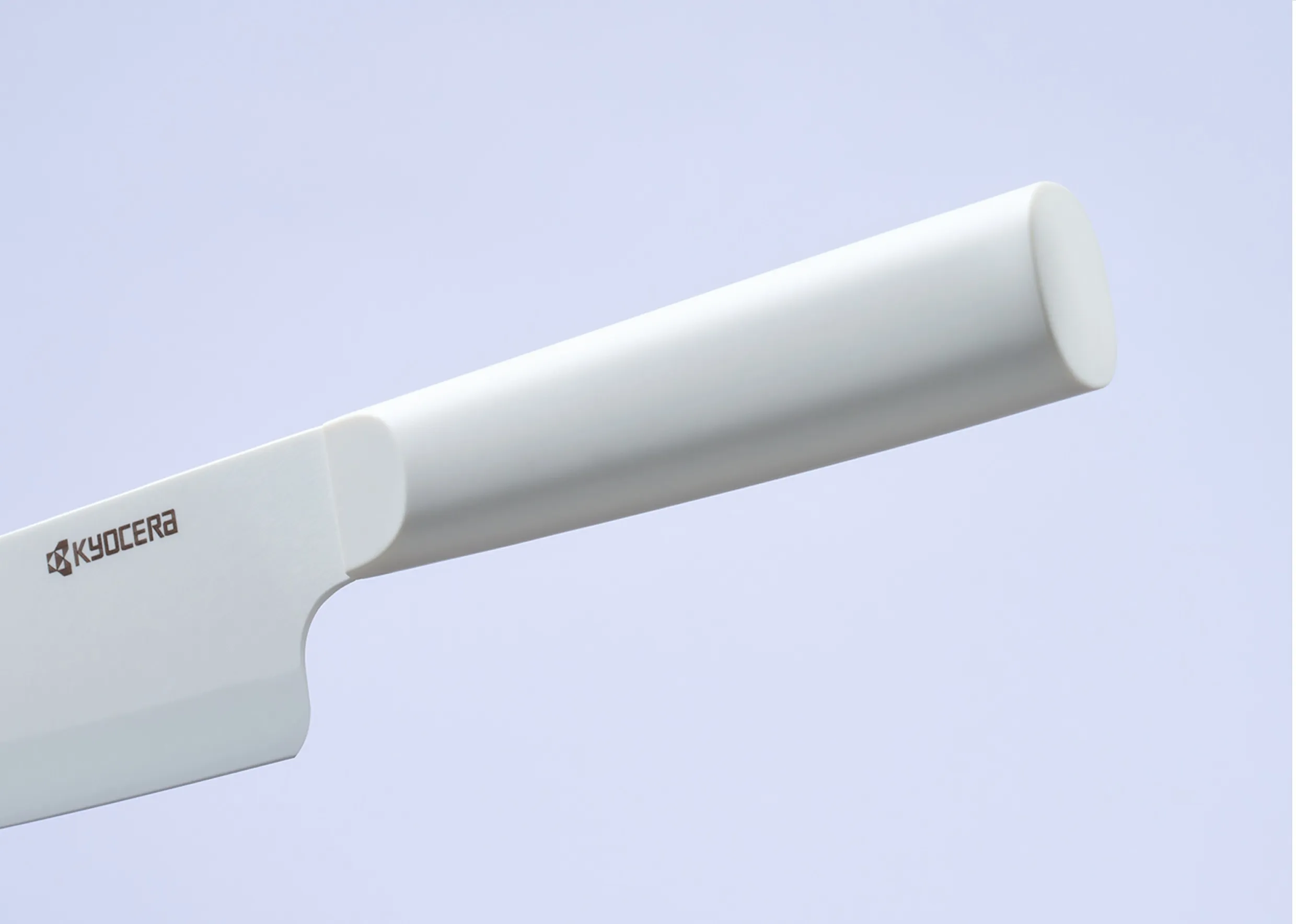 京セラのセラミックナイフの刃先の特長である、ハマグリ刃と呼ばれる刃付けは、欠けにくさとともに切れ味の持続性を高めています。また、刃付けの最終仕上げを1本1本丁寧に手作業で行い、より高い品質を実現しています。