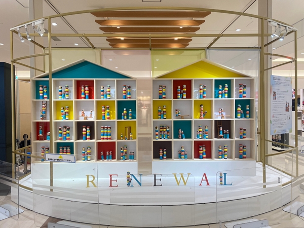 KUZUHA MALLは2023年3月から秋にかけて段階的にリニューアルを実施しています。リニューアルビジュアルには「松屋銀座の地域共創」と青森県黒石市との取り組みにより、津軽こけしの未来へ向けた新しいデザインとしてうまれた「ルビンのこけし」を起用。