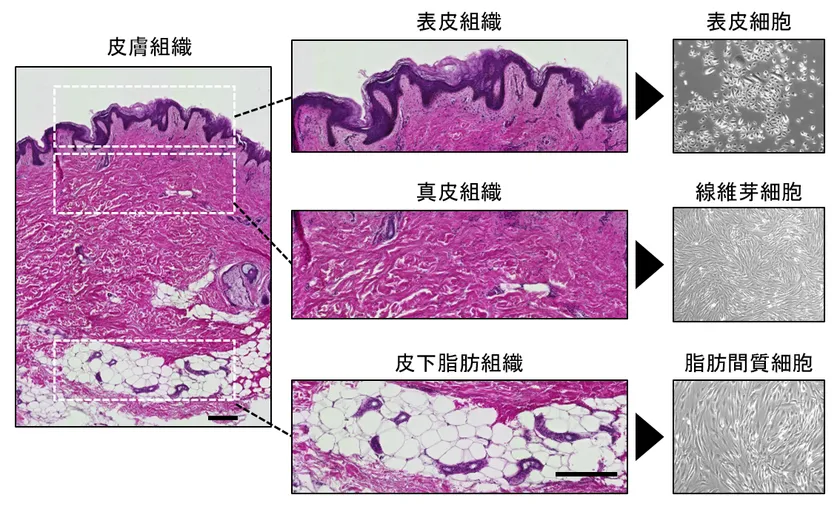 図1 1人のドナーの皮膚組織から3種類の皮膚細胞を分離
