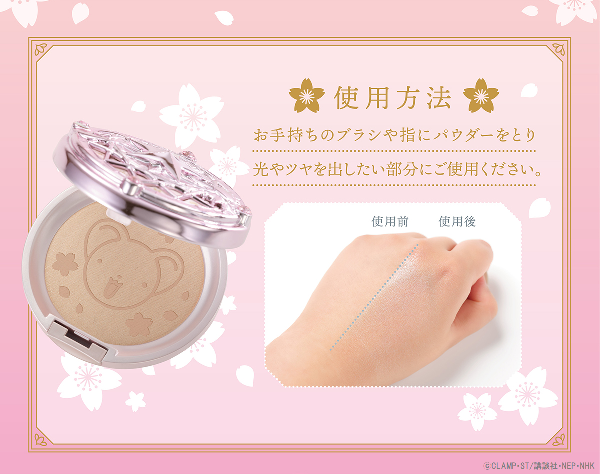 本商品は、「カードキャプターさくら」に登場するさくらカード編の魔法陣をモチーフに商品化した『ハイライトパウダー』です。カードキャプターさくらのコスメを扱うブランド「Release catch me」の第3弾商品として発売いたします。