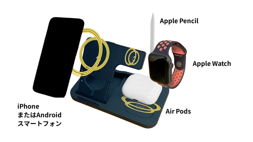 パッド:「iPhone、AirPods、Apple Pencil」または「Apple Watch、AirPods、Apple Pencil」の充電