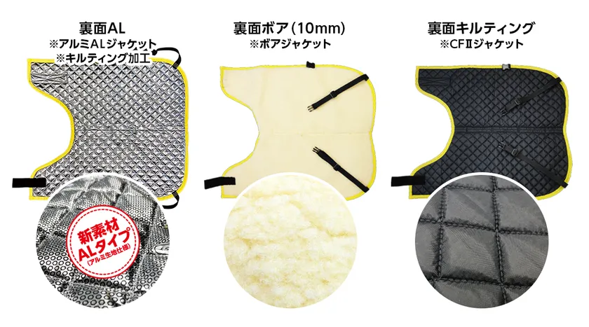 カーフジャケットの裏地にアルミ生地を採用、キルト加工することでより一層丈夫になりました。従来のボアタイプやキルト生地ももちろん保温効果は抜群ですが、アルミ生地はさらに厳しい環境下でも、仔牛の体温調整に効果を発揮できます!