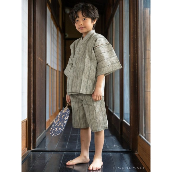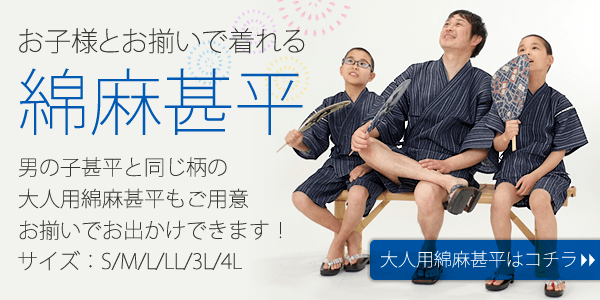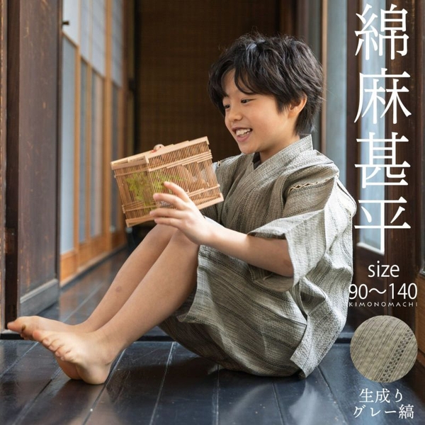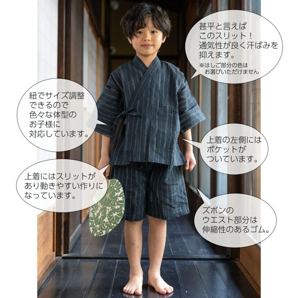 綿麻素材の爽やかで着心地の良い男の子用甚平は90cm~140cmの全6サイズ展開。
