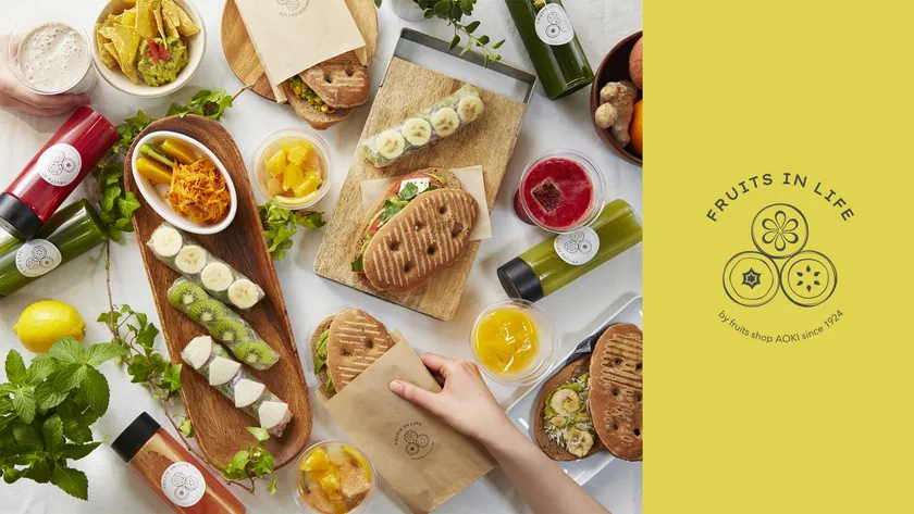 「FRUITS IN LIFE」は、創業98年目のフルーツ専門店「フルーツショップ青木」から生まれた、『フルーツ食』という新しい食習慣を提案するヴィーガンのフルーツジュースバー&デリ。2021年3月、東京ミッドタウンにオープンしました。
