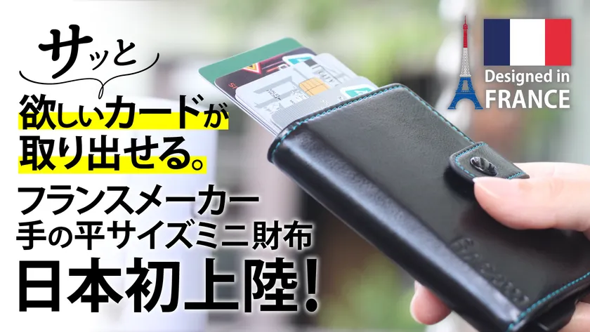 本商品は、フランスメーカーによるスタイリッシュなデザインで、レバーをスライドして瞬時にカードを取り出せ、スキミングブロック機能も備えた日本初上陸のミニ財布です。
