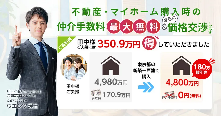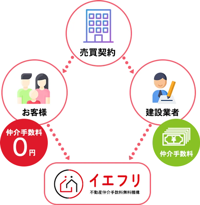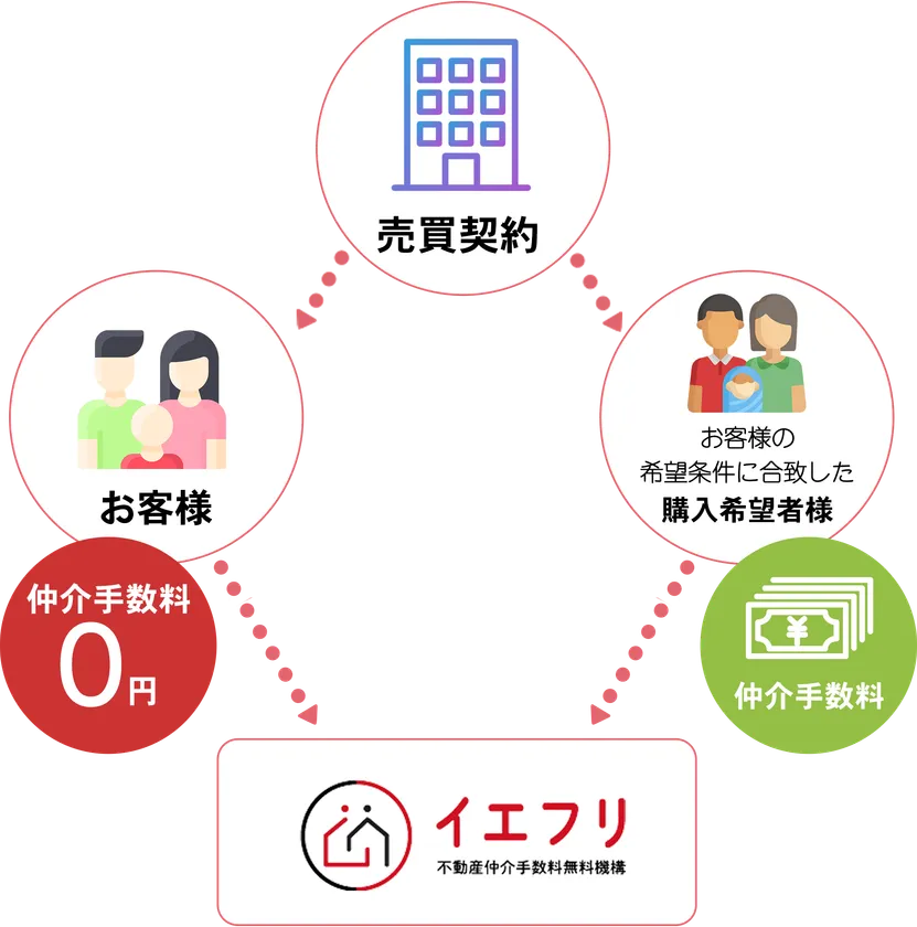 本サービスを通じて物件を購入する場合、物件の売主様から仲介手数料が出る物件では、お客様からは仲介手数料を一切いただかず、無料で仲介しております。